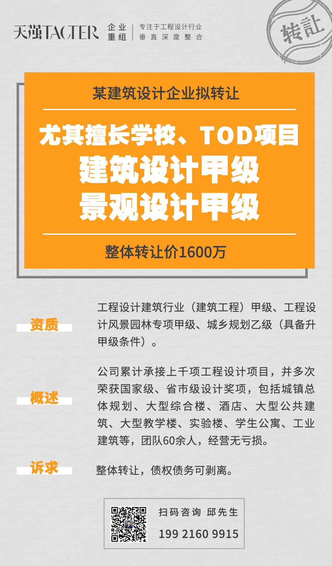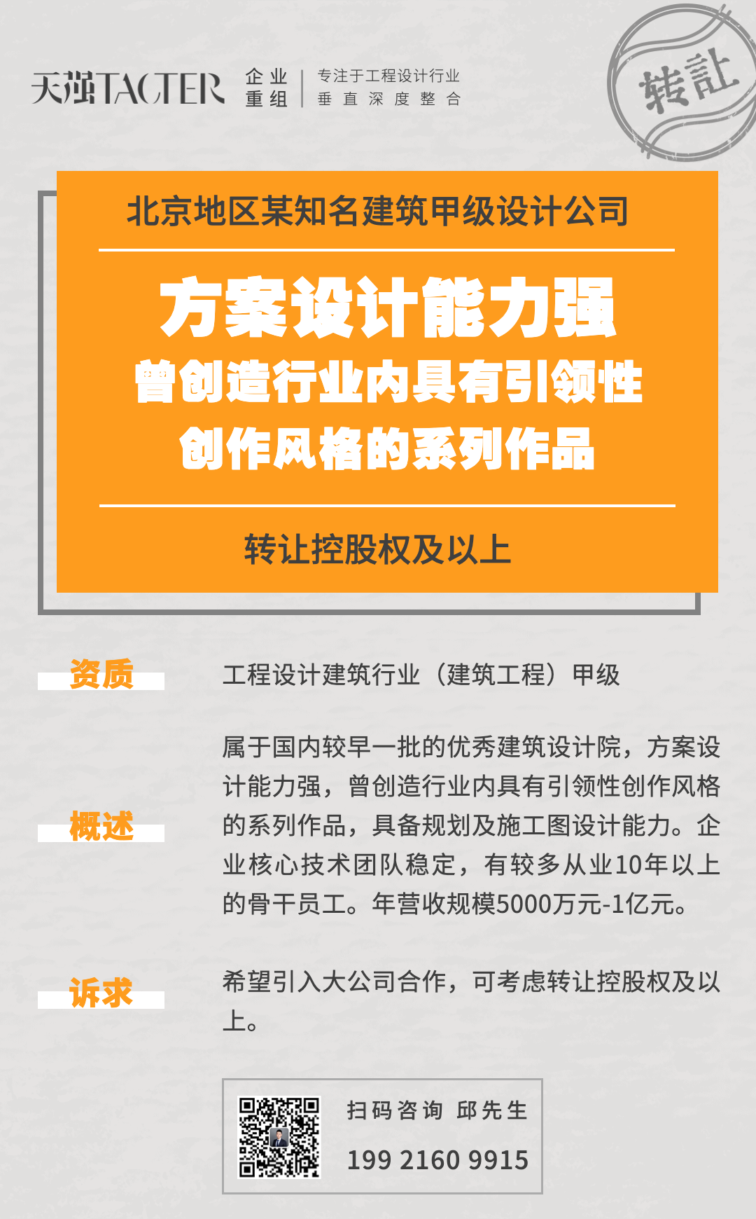 拟收购建筑工程设计甲级小规模公司