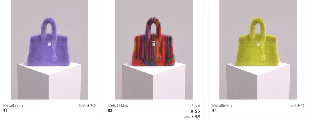 12月初,美国艺术家 Mason Rothschild 在迈阿密巴塞尔艺术展上推出了100个“MetaBirkins”系列NFT手袋,希望通过数字时尚的方式传播零动物皮毛奢侈品的意识。