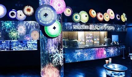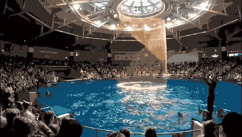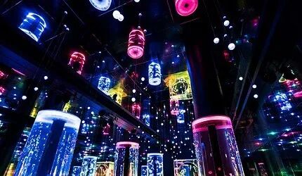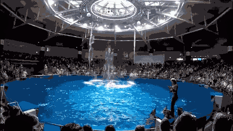 东京地区的Maxell Aqua Park品川水族馆,采用科技声光效果,让水族馆里的海洋生物看起来缤纷多彩。尤其是在二楼360度环绕型的海豚表演剧场,有一个直径长达25公尺的圆形水池,它依照日夜的变化,喷射出各式各样的喷水和七彩灯光,带来变幻的声光效果。