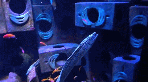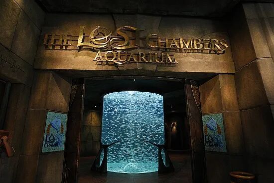 在这个水族馆,游客可以与鱼亲密接触,好像置身于鱼群中。他们在Ossiano餐厅吃饭,透过墙上的玻璃可以看到鱼;在儿童俱乐部,透过海底剧场的两扇大型的与水族馆相连的弧形窗户可以看鱼;在失落的空间的主题走廊上,在水世界冒险乐园里,在水上滑梯的通道里可以看鱼。更有趣的要数在“失落的空间”套房,这里有一面墙巨大的玻璃,与水族馆连接,水族馆里的鱼会不时从眼前经过,好像镶嵌在墙上的动态壁画。游客可以一边在浴盆里泡澡,一边注视着这些奇怪的鱼,观察他们在海底的生活情况。