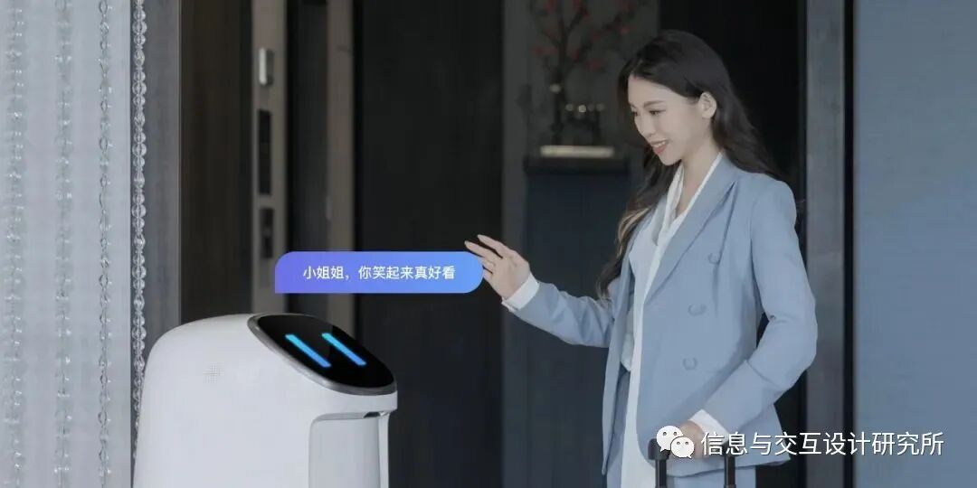 比如女神节的时候,它会主动地跟女性客人说:女神节快乐等;这种主动交互还是多模态的,在打招呼时不仅使用热情具有特色的语言,还有生动丰富有感染力的表情,甚至机器人的形体动作。