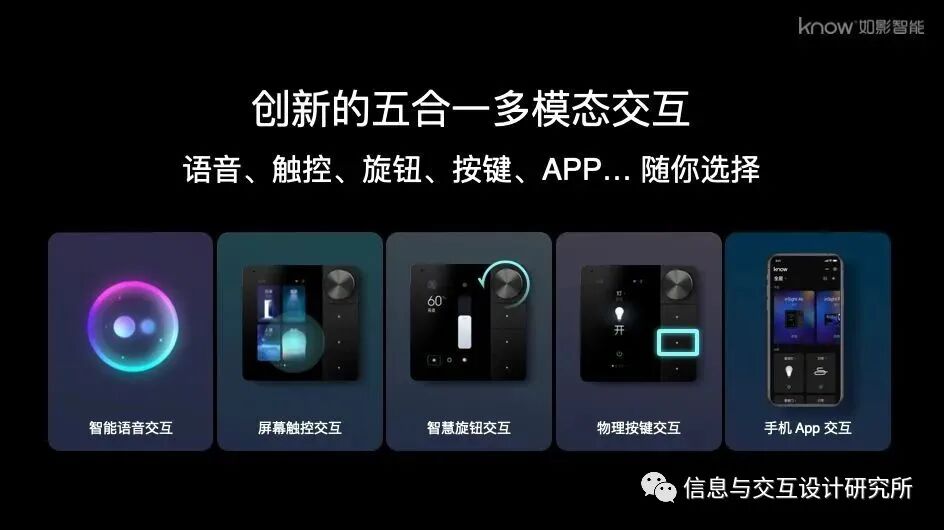 采用了多模态交互,支持语音,触控,旋钮,按键,APP等方式控制,支持zigbee3.0 , 蓝牙5.0,双频wifi,RS485总线,以太网,KNX 等六种主流协议。