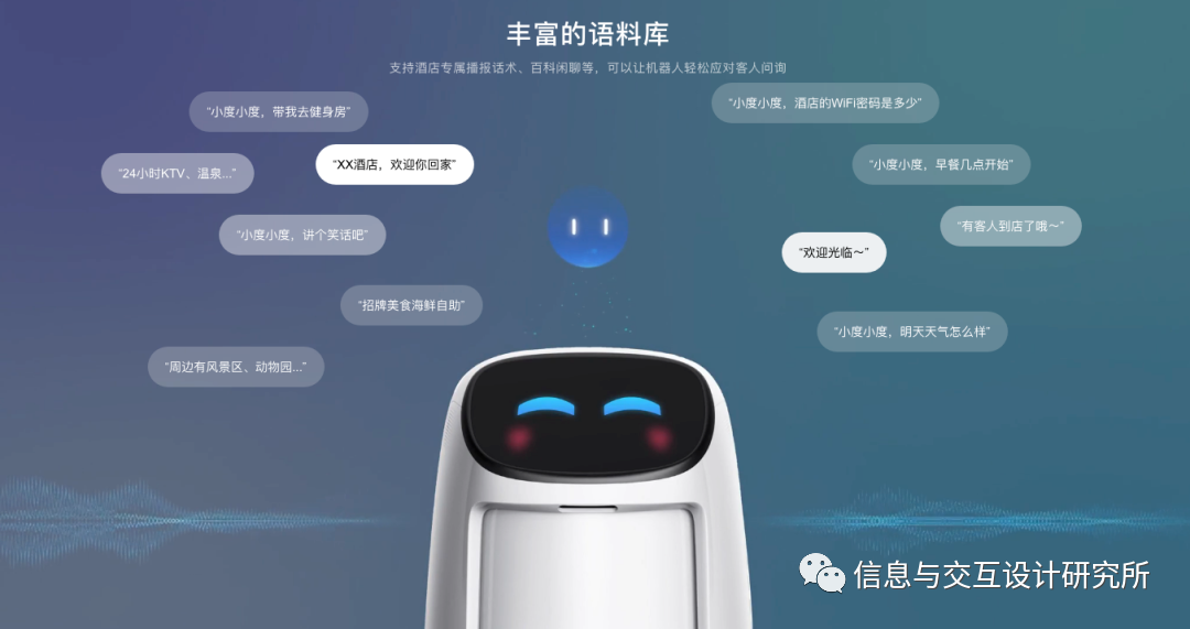 相比于常见的服务机器人,见面问好这些基础交互能力,小度配送机器人则更加强化了交互的个性化。它能够根据时间、节日、客人典型的行为特征,发起不同的交互方式。