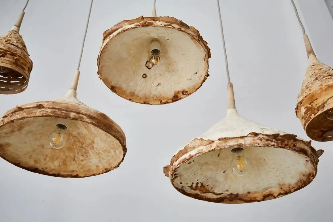这款灯研究了菌丝体作为家具设计中潜在材料的可行性。菌丝纤维与柳木碎条结合,为真菌生长提供基础和饲料。每一盏灯都有其独特的设计和独特美学,充满了不完美之美。这些具有”生命“的灯需要 4-12 周的时间才能“生长”完成。