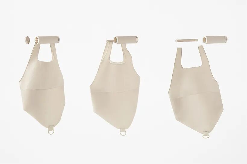 nendo为罗森设计了一个环保购物袋,轻轻一拉环扣,袋子就会舒展开来,强调简约且人性化的细节设计。