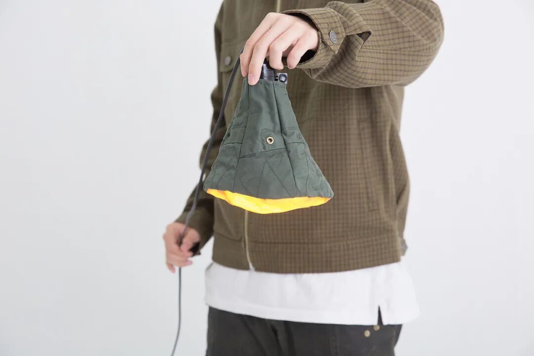 另一个是一个小灯罩内有金属丝制成的凹形,薄尼龙反射美丽的光线,同时使用倾倒的衣架杆保持气泡夹克和固定垫的蓬松性。