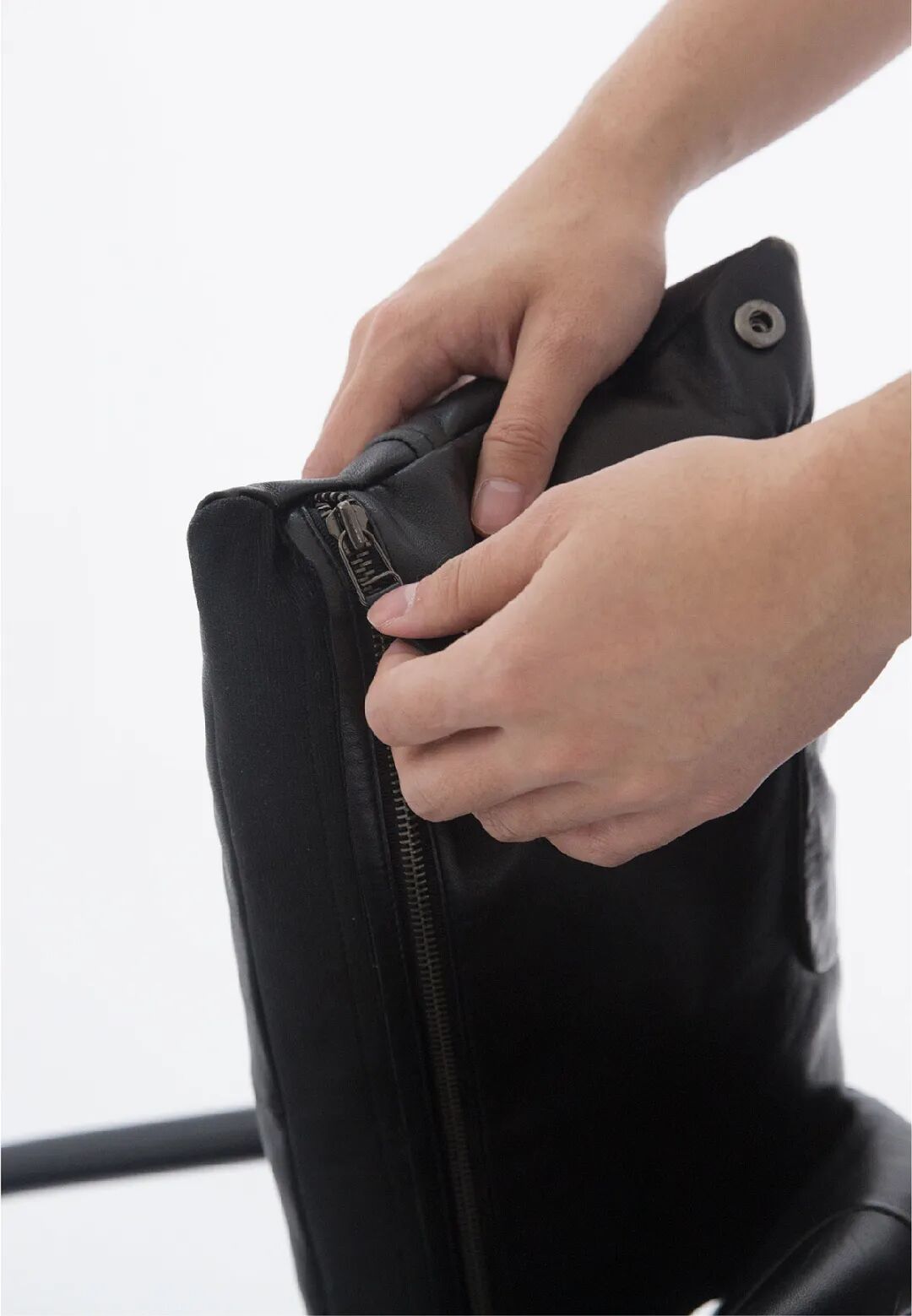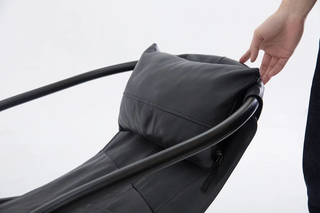 一个是由两件皮夹克制成的最小椅子。用皮夹克的拉链和纽扣制作了靠垫,都是可拆卸的。通过裁剪和组合衣服的随机图案为椅子增添了美感。