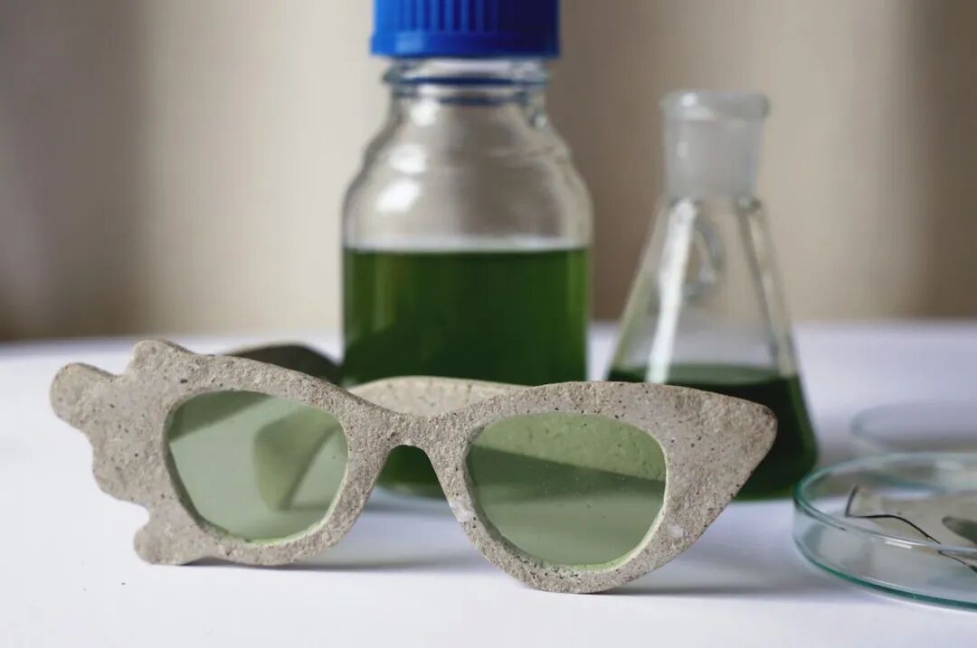 Cinzia Ferrari 制造了一副由蓝细菌制成的太阳镜,通过创新的可持续设计保护环境。蓝藻(又名蓝细菌,但并不属于细菌,也不是绿藻)是可以在各个栖息地找到的单细胞原核生物,蓝藻生物矿化的过程可被用于制成独特的材料,它们可以变成砖块,然后制成其他物体。该项目抵消了排放,这个想法完全可持续。