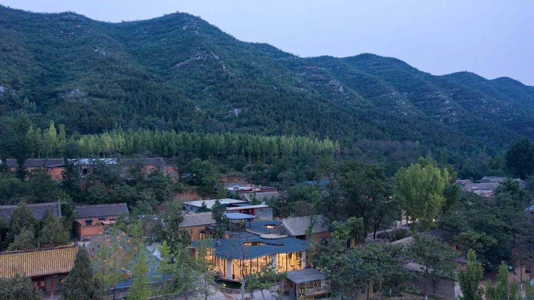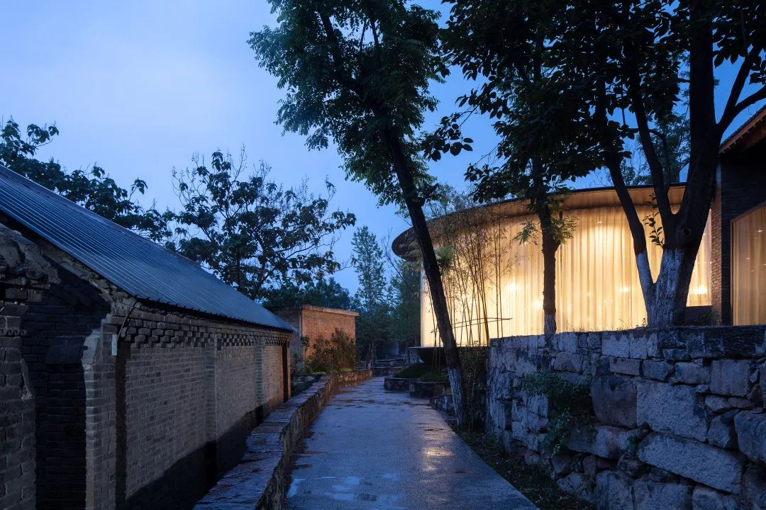 建筑师用弧形玻璃和素土建筑等设计语言,营造出屋檐下、棚有台、土山房等多个建筑空间。“老村小馆”是集餐厅、清吧、小舞台、民宿、中式庭院、艺术展墙一体的多功能空间,能满足人们的多重需求。