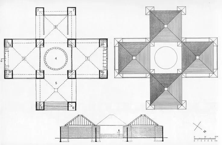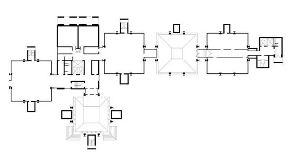 原始的组织形式被抽象理解成了有由走廊包围学校,由走廊包围教堂的形式。康把他对于“形式”的理解,转译为形式图则,从而描绘出符合他原身设想场景及欲望里的建筑。