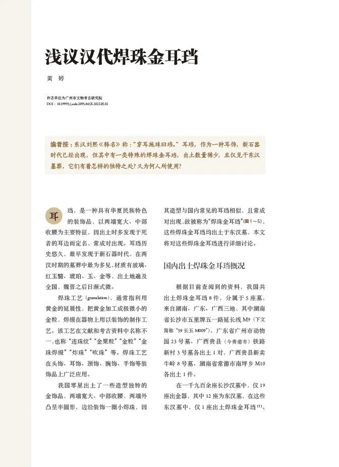 浅议汉代焊珠金耳珰