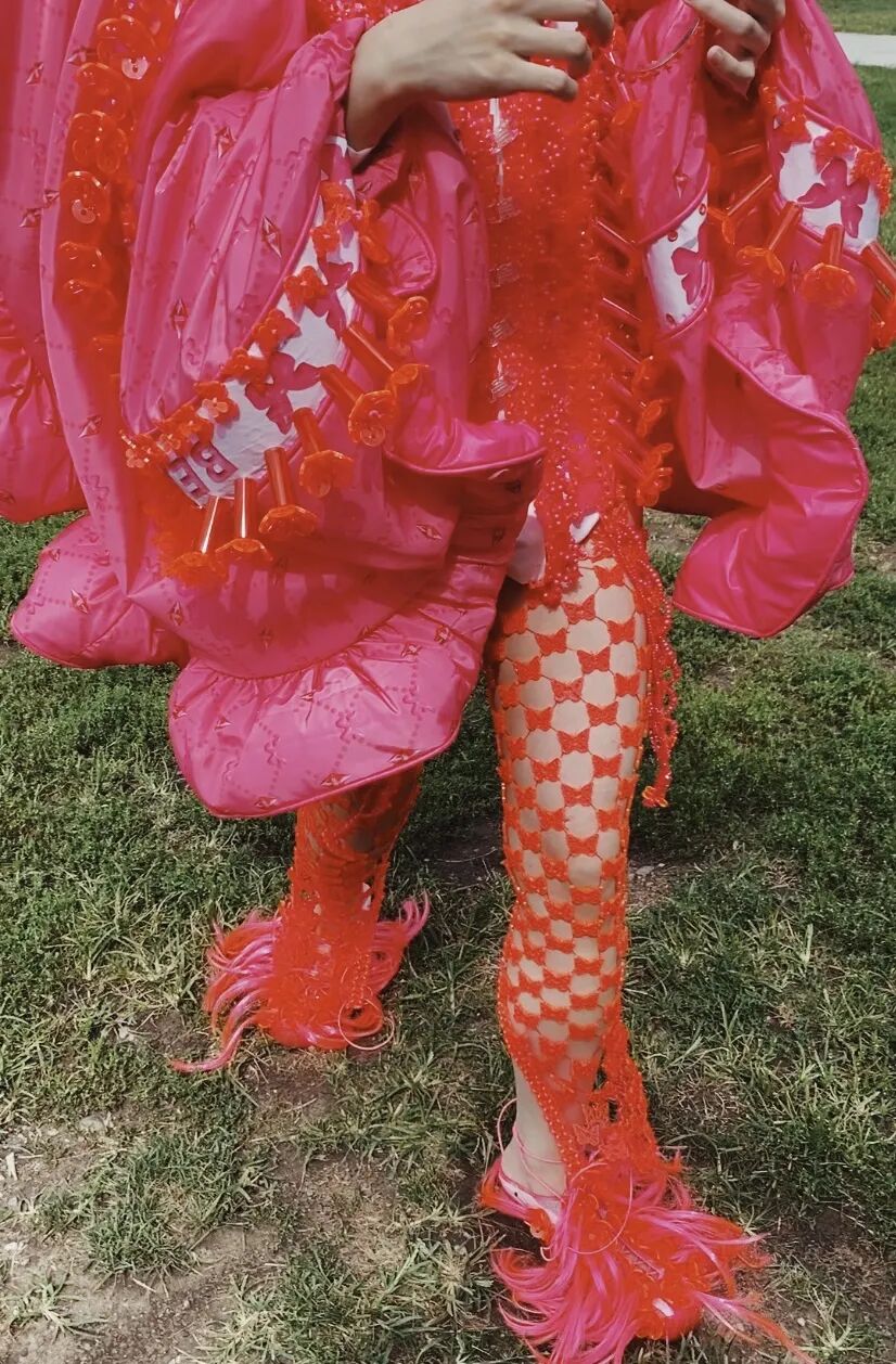 她的服装的最初灵感来自于她的童年记忆。她的毕业设计系列的催化剂是她年轻时经常玩的彩色塑料小玩具大军。她说,她的“越多越好”的理念和对荧光色调的喜爱是由去小商品市场的旅行引发的,她的父母会在那里给她买这些玩具。