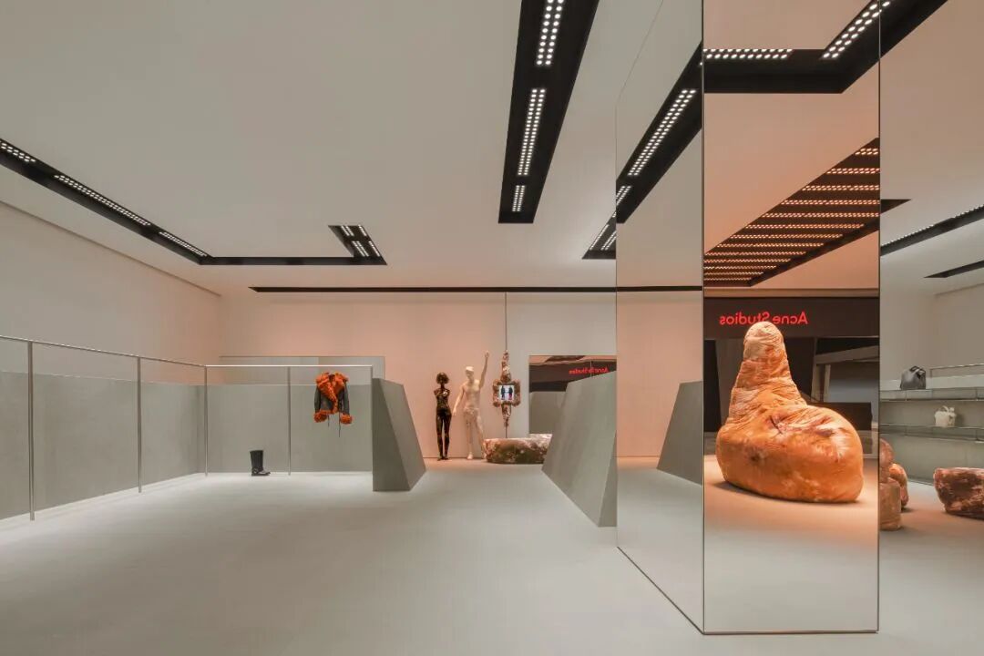 作品集2023-10-21 独特设计语言,Acne Studios 最新成都门店 成都SKP店铺崭新启幕,这间位于成都SKP下沉式建筑内的全新店铺,遵循品牌全球门店的设计精神,呈现每一间Acne Studios所在地的独特设计语言。 凝聚多元艺术灵感,由Benoit Lalloz设计的照明灯具,以线性形状分布排列,英国设计师Max Lamb打造的肉粉色扎染帆布家具,以异形结构呈现于店内。该店铺首次运用由Max Lamb设计的触摸电子屏,为顾客浏览当季系列与产品信息提供便捷。此外,艺术家Daniel Silver设计的人形模特装置,为到访者建立了一场人与空间的对话。 项目信息 项目地点:中国・成都SKP 图片:Acne Studios 项目时间:2023年 本文来自微信公众号“T5OP设计网”(ID:T5opCom)。大作社经授权转载,该文观点仅代表作者本人,大作社平台仅提供信息存储空间服务。 TAGS: 商业空间室内门店 相关文章Kleoniki Andr…这是大王Day.281获奖作品《2020最佳图书…精选头像|搞怪来袭!安东尼奥·布埃诺 作品配色清新梦幻的场景插画,充…美国Jennifer Mc…【小鹏设计】设计小改/动力…【首发】地点空间丨打破空间…谢商家不坑之恩!只骗有钱人…