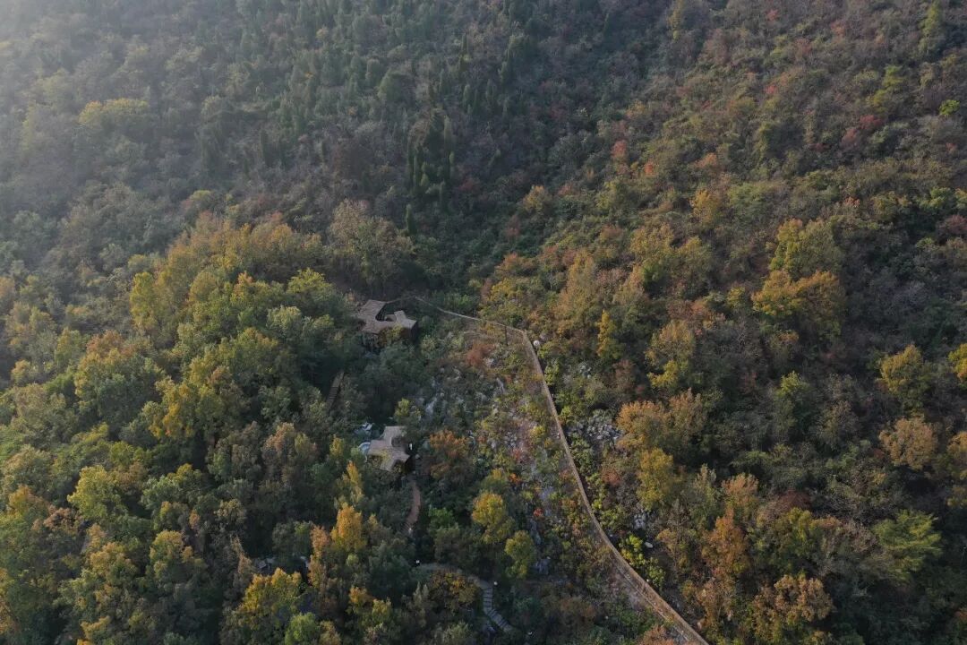 设计方案中保留了自然环境的原始地貌和植被,同时考虑建筑与周边环境的互动关系,因小屋坐落的位置不同,怀揣对大自然的敬畏,产生了两类截然不同的趣味形态。穿越过不算茂密的灌木,场地的栈道便绕开了丛林与乱石,也会偶遇孤立的树木奇石,索性开洞跨越过去,小径崎岖蜿蜒如同叶子脉络,将四栋独立的小屋并联在一起。