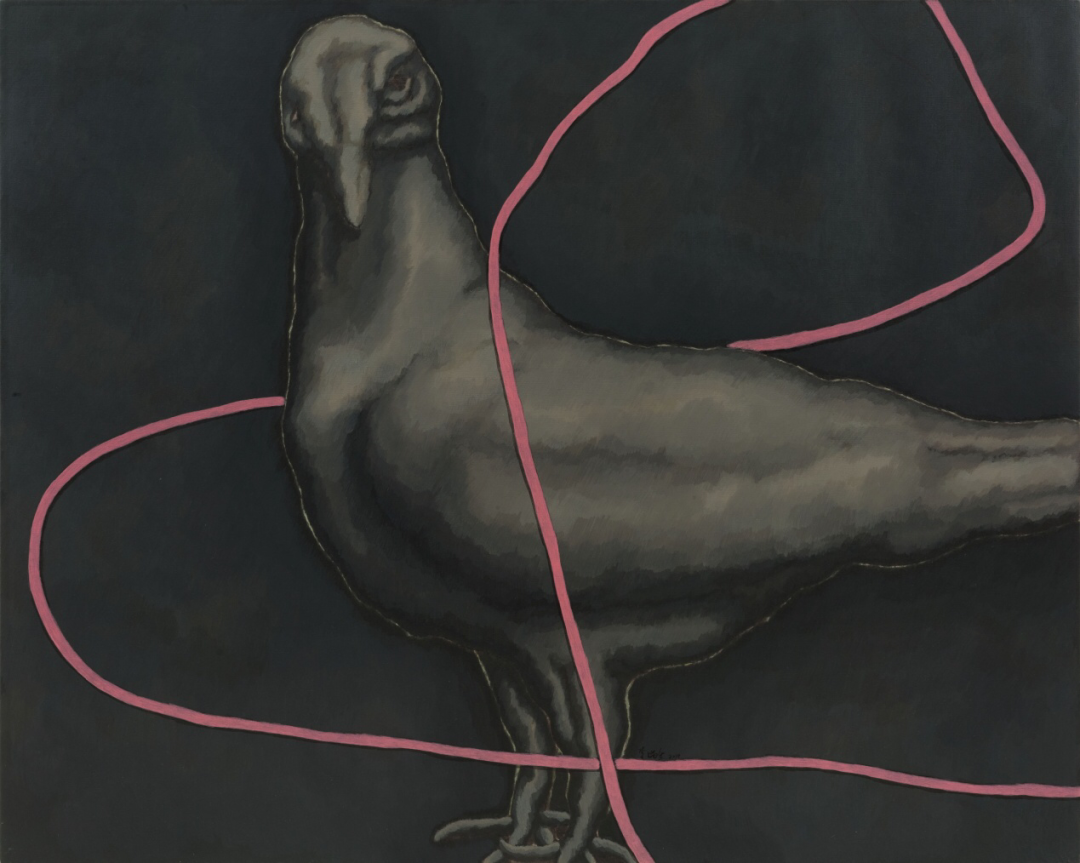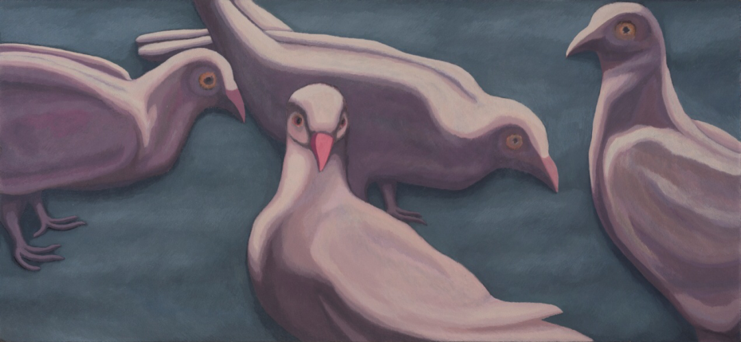 我喜欢用一种自我反省式的态度描绘自己和自己身边的事物,画面中出现的物象鸟或者人都是我的模特罢了,他们随着内心各种感觉的需求扮演着不同的角色,传达出内心深处莫名其妙的压力和情感动荡,是一种隐喻象征,他们都是当时自己内心的召唤:感觉到希望的同时又感受到希望的茫然,内心极度矛盾,各种复杂的情感交织在一起,那些细小的连接心跳的笔触好像能帮我缓解内心的矛盾,回归宁静。有股力量驱使我把所有的生命热情都投入到画布中去,这也是我为什么选择绘画性笔触的原因。每一笔好象都带有生命热度,慢慢融化到骨髓里。在这一点上我深受黄宾虹,贾克梅第和塞尚的影响,他们作品里的每一笔仿佛都是一种无声的言说,慢慢地把画布渗透融化,把观者融化。我着迷于这种表达,被它强烈的生命迹象所感动,血液里需要它们,好象生命的源头就在那里呼唤。我喜欢那种笔尖与心跳融合在一起的绘画状态,用小笔不断反复的塑造对象,不是为了刻画出一张张辨认出谁是谁的身份证,而是想要通过不断迂回下笔,接近真实的丰满。我想努力挖掘那些人性的最本源最真实最动人的东西。