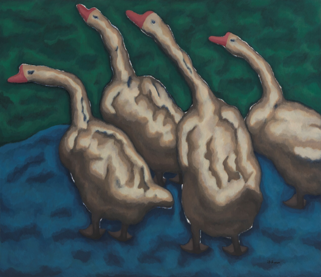 I like to use a self examination attitude to describe myself and the things around me, objects appears in my creation no matter is it a bird or a human, they are just my model. They will follow their internal feeling to act as different characters to portrait their internal feeling of uncertainties and stress, like a kind of metaphor. They are what my deepest feeling during that time; with some hope but also loss of hope, felt with conflict and mixed feelings, even those tinny brushstrokes help me to claim myself and allowing me to return to peace. There is a force that drive me to put all my life and passion onto my canvas and this is also why I choose painting over other mediums. Every strokes seem to have a life, it slowly melts into our bone marrow. From this point, I was deeply influence by Mei Huang, and Cezanne. Every brushstroke in their works seem like a silent speech, slowly melting and penetrating the canvas and later touches the viewers too. I am obsessed with this kind of expression, being touch by this vibrant type of life, as if it is the source of life.