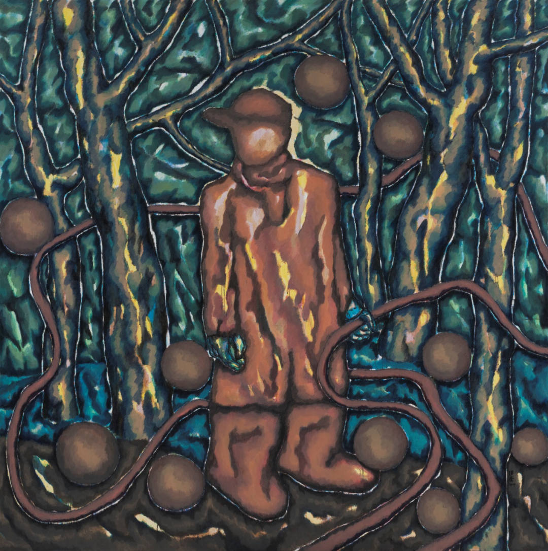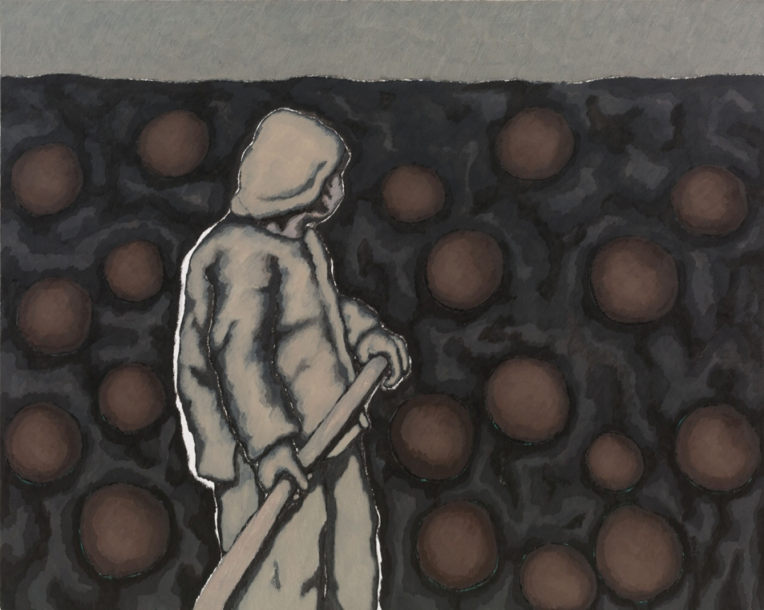 提水的男孩 120X150cm 布面丙烯炭笔 2016年