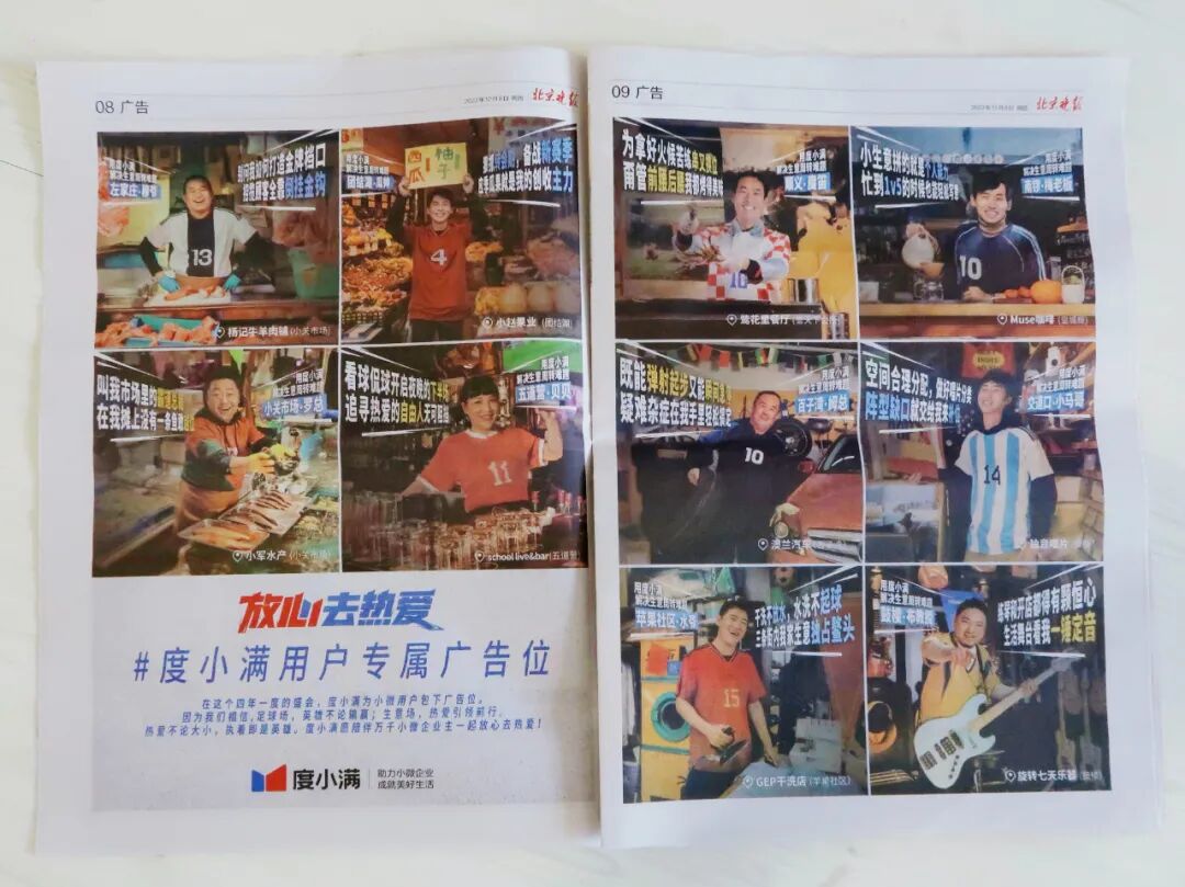 可以看到,在海报内容表现上度小满还兼顾了用户热爱的世界杯元素,视觉上每个店铺老板身穿世界杯球队的球衣,文案上将生意特色融入了球星代号以及足球语言,比如盘带、越位、任意球、倒挂金钩、弹射起步等等。
