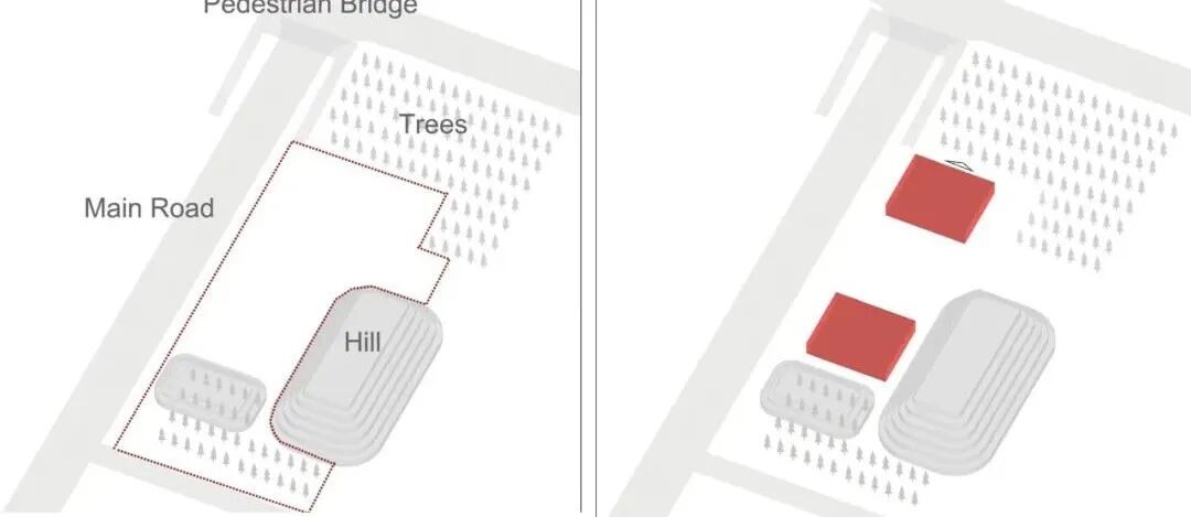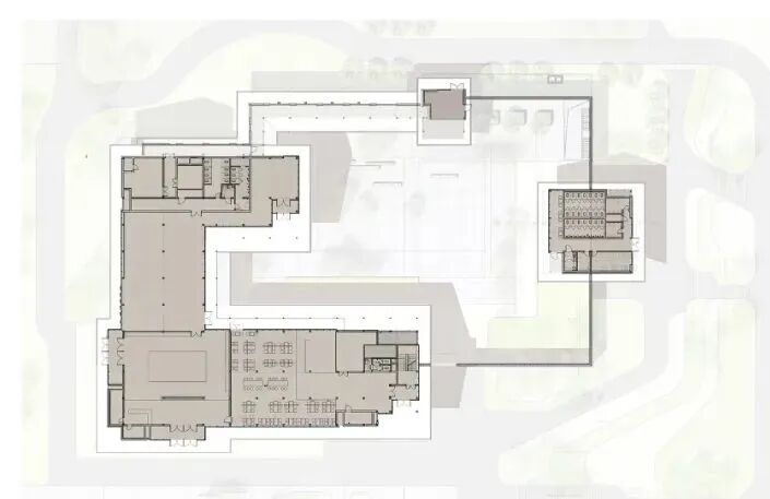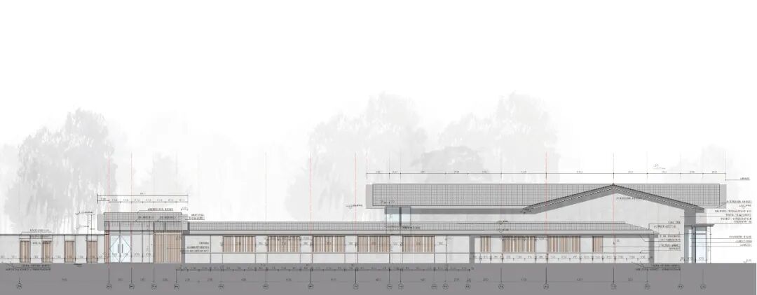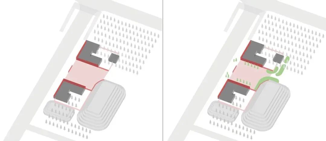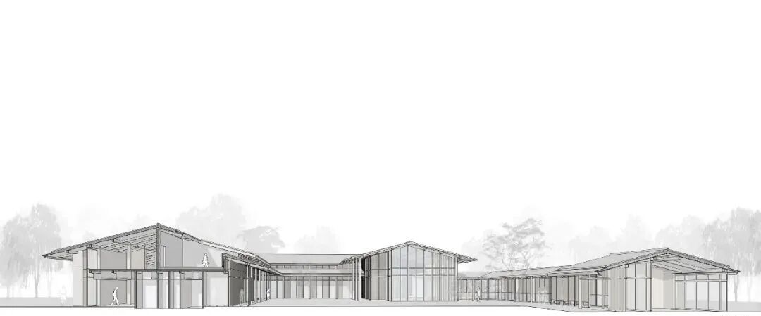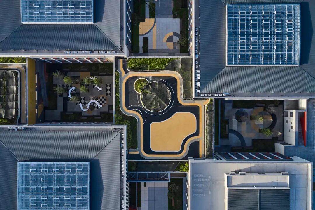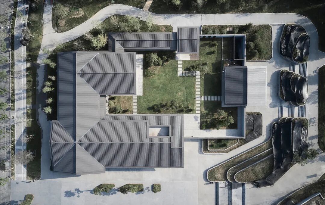 我们的另一个项目—曲江第一学校也在风貌控制地带,原则上也是要做坡屋顶,但我们做了一个四面内凹的坡屋顶,弱化了古建筑元素。