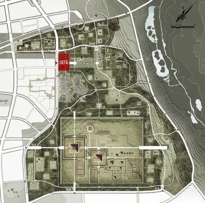职朴:没有出土文物。注意的事项主要来自文物局,这个项目首先规定需要浅挖,不能挖超过3米,文物局不许做深基础,我们就做了一个筏板,把建筑放在一个大的板子上,平均受力就可以挖得浅一些。