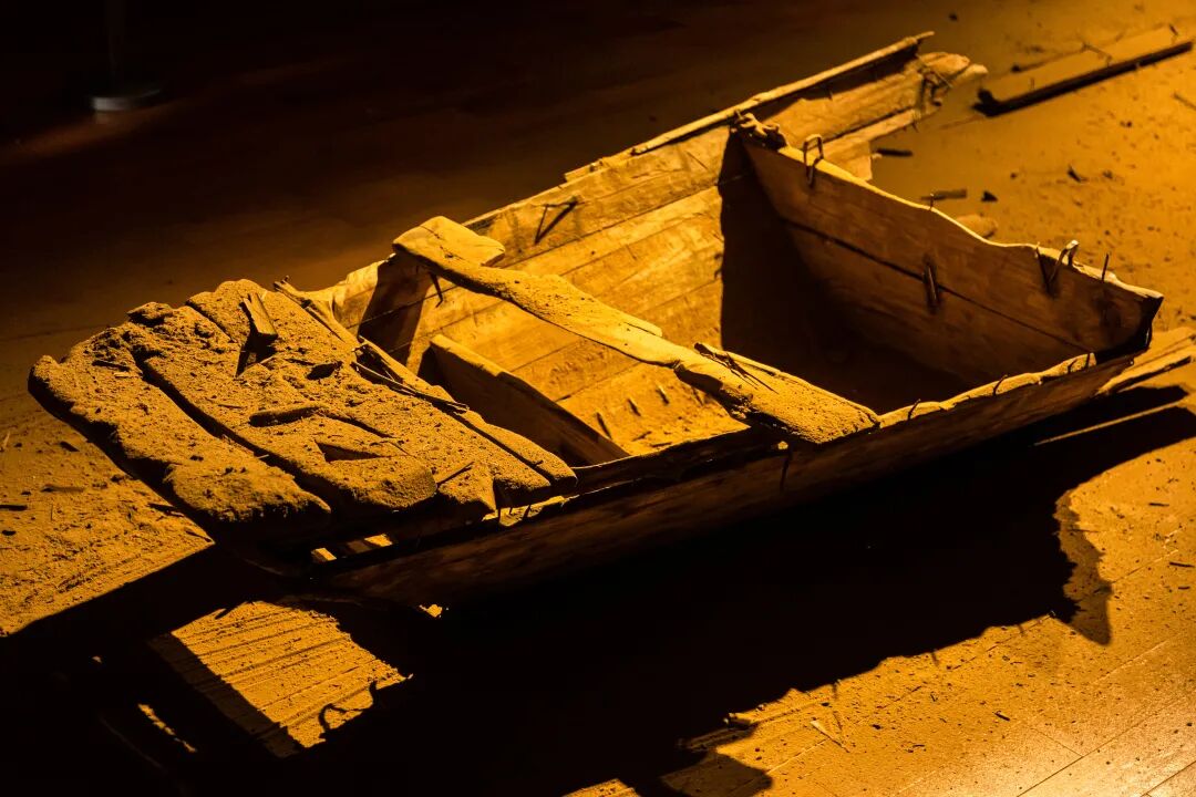 二号厅陈列着被分解成数块的木船,在巨大的迪斯科球的闪光下若隐若现。被分解与磨碎的木船延续了史金淞的“灰度”系列的语言。木船研磨下来的粉末遍布展厅的地面,粉末既是主体的丧失、整体的破碎,也是个体被碎片化、原子化之后依然存在的隐喻。种种粉末、尘埃构成的作品“灰度”,既是处处惹尘埃的人间执念,也是度人亦度己的彼岸向往。