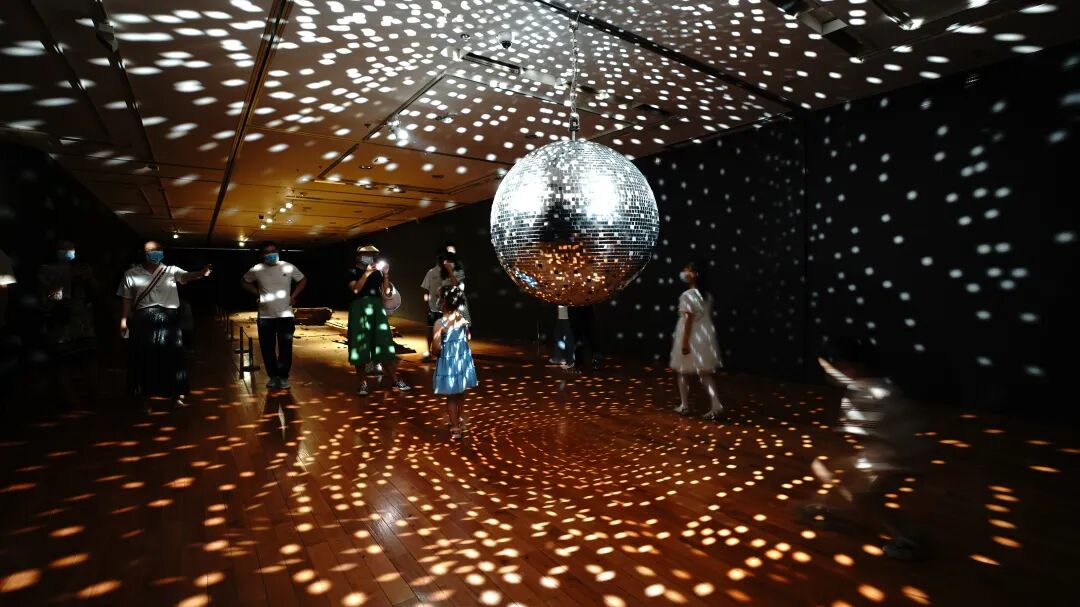 我们不仅可以在“灰度”的粉尘中看到“无穷”,展厅中闪烁不停的“迪斯科球”上面的不计其数的晶片以及贴在其上的图像,以另一种让人目眩神迷的形式来展现着“无穷”。在克尔郭凯尔看来,人前行的每一步都被世界逼着做出各种的选择,而看似自由的选择会带来种种焦虑和恐惧,克尔凯郭尔把这种情绪说成是 “面对自由的眩晕”。距离第一次在武汉美术馆做展览已经36年,期间做过的所有选择,构成了今天的这个人,但他无法向十七岁的自己描述这些所有的关于 “自由的眩晕”,就像人们无法逼视现场让人眩晕的迪斯科球闪烁的光芒,只能感受其中关于生命、时间的无穷性。