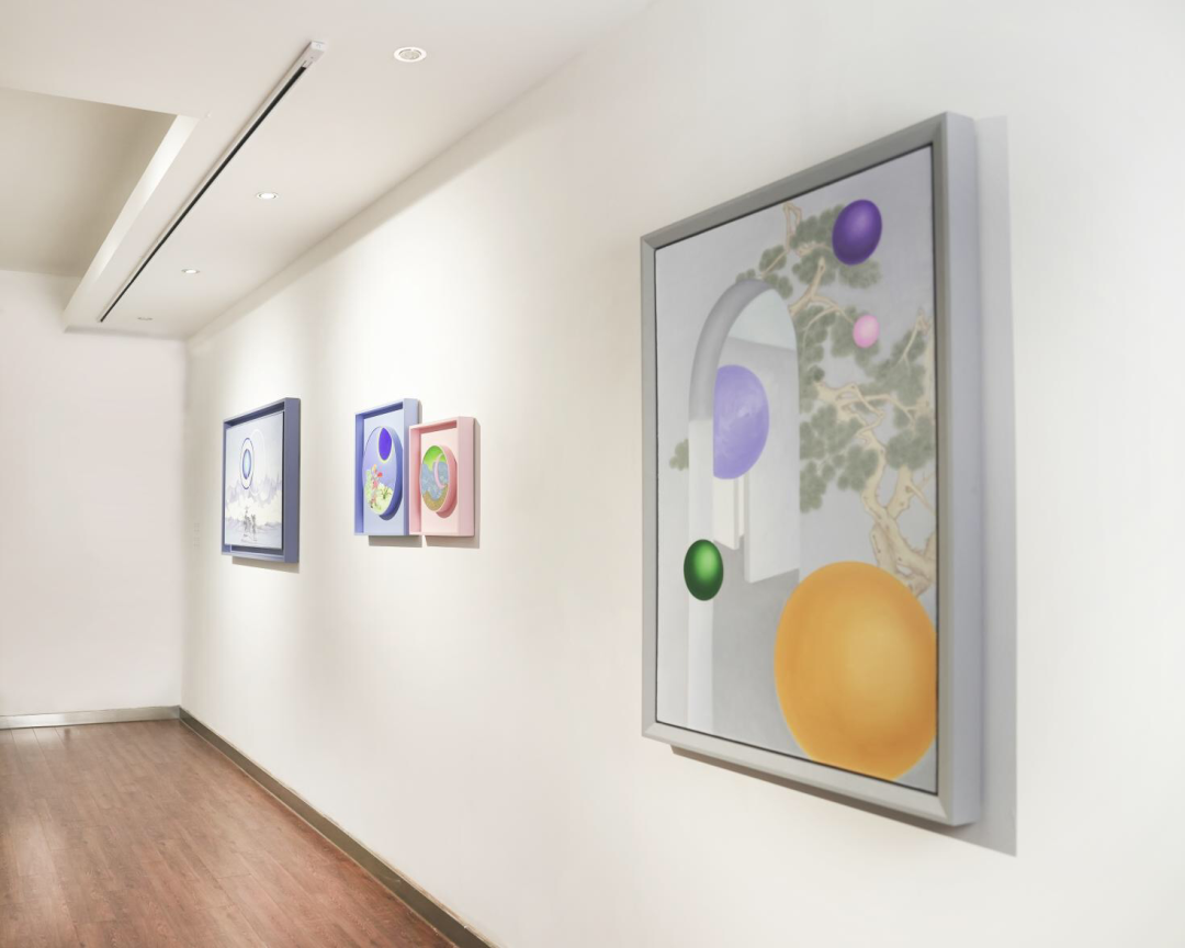 把图像与空间错置,产生一种超现实主义的突然并置,带来很惊讶的新图像,这是马格利特的超现实图像的想象方式,在你的作品里确实可以感受他到对于你画面图像构成的影响。在你的作品中,看起来是中国古典的山水画,可是你把一个月亮,两个月亮,甚至太阳和月亮,还有四个五个球体,同时并置在这个山画上。作为一种挪用与想象,你自己的处理方式还是非常明亮夺目与迷人的。这种想象力的并置,好像从很早就开始了,你一直对绘画空间有着思考,这种思考还是具有现代性的反思与概念的赋予,而不仅仅是一种图像并置而已?