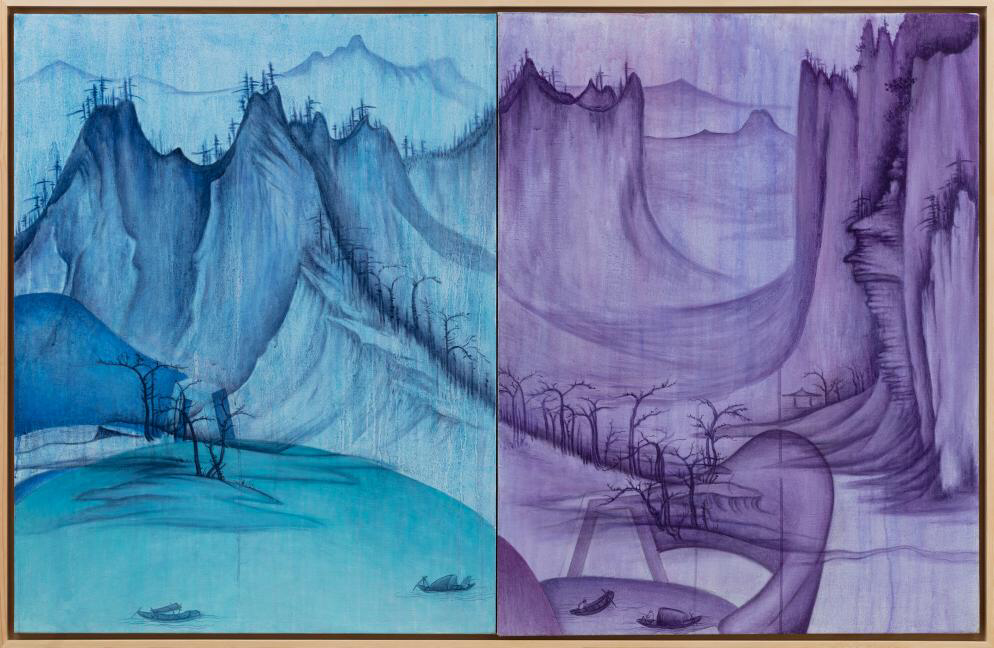 同时看到两个月亮,这是女艺术家阳阳的绘画视觉,是她独有的视觉感知是她对于自然与图像,中国传统山水画与西方透视空间,中国秀色与油画色光等等……两种不同要素的奇妙结合,是“阴阳”两重性在个体手上的梦想组合,具有某种“双生花”之美。