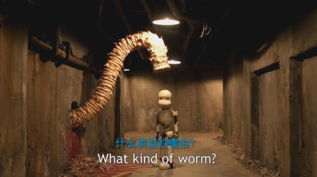 除此之外,在主角的头被蠕虫咬掉的时候,导演用滚动的镜头,模仿主角此时的视角,也看起来很惊艳,有点像《鬼子来了》里最后那段主角被砍头后的镜头。