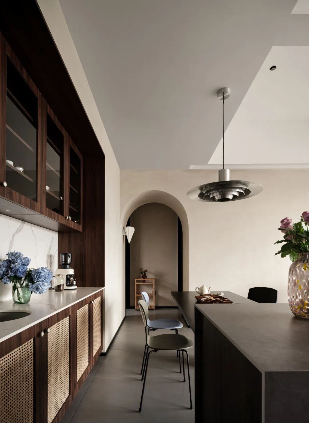 房子位于顶层,原户型是三房两厅的大开间布局,层高优越,但厨房和主卧卫浴略显拥挤,存在需求与功能划分不均的问题,因此我们对全屋重新拆分整合,为屋主量身打造一个最为契合的家。