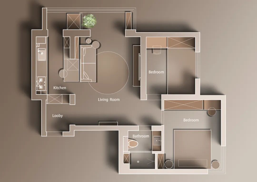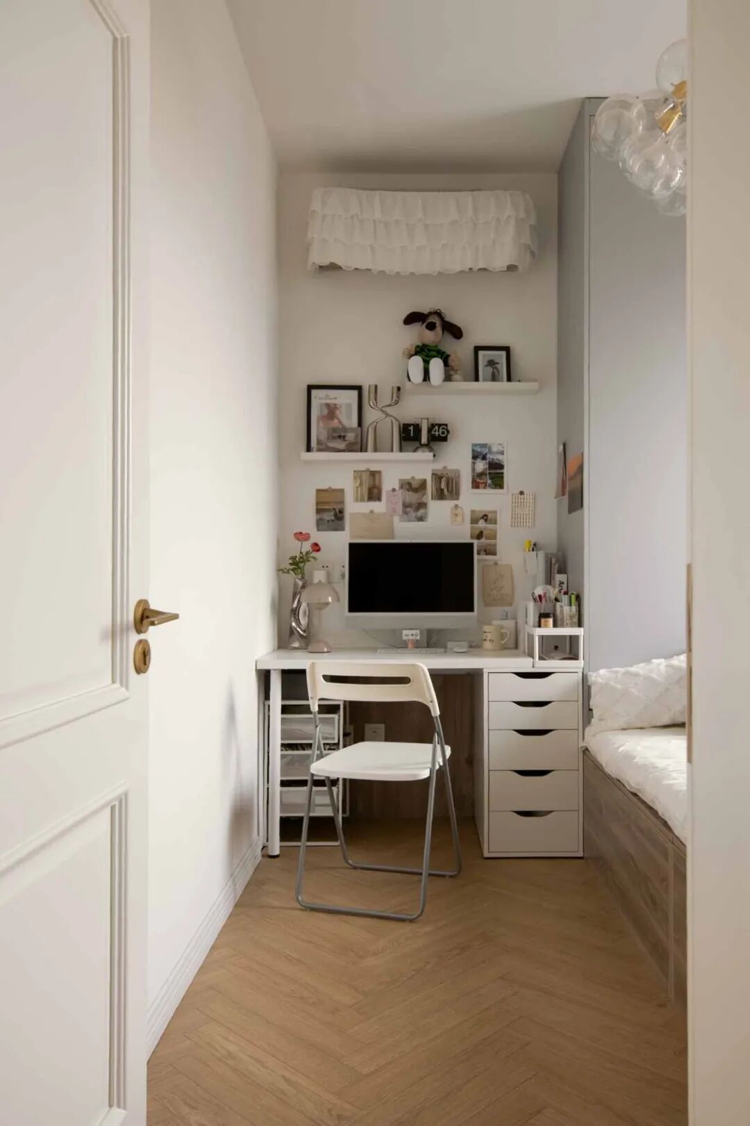 主卧微调入室门的位置,让床尾正好能够靠墙嵌入衣柜,增加收纳空间,室内整体的布局变得更为合理。