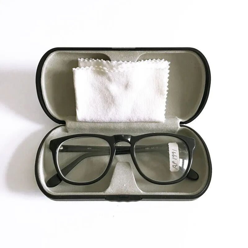 Glasses in case, printed cleaning cloth