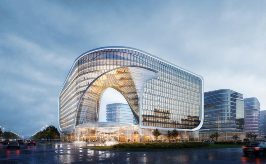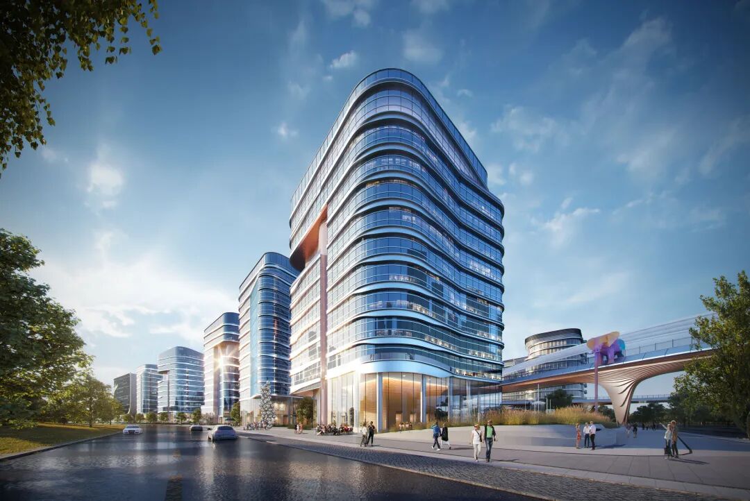 项目总用地面积16.95万平方米、总建筑面积60万平方米;设计将链接理念嵌入城市环境,以“万物皆可联”的概念展示电商产业园超乎寻常的能量汇聚,形成无穷无尽、循环流动的发展态势。