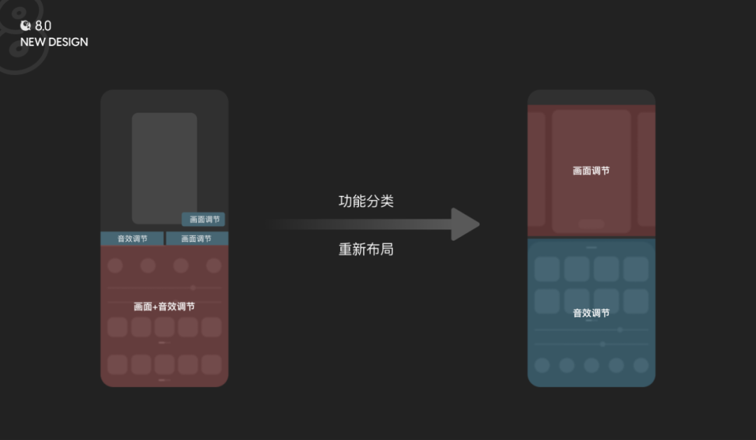 改版后,干脆将画面调节全部放到上半界面,将音效调节全部放到下半界面,泾渭分明、简洁明了。