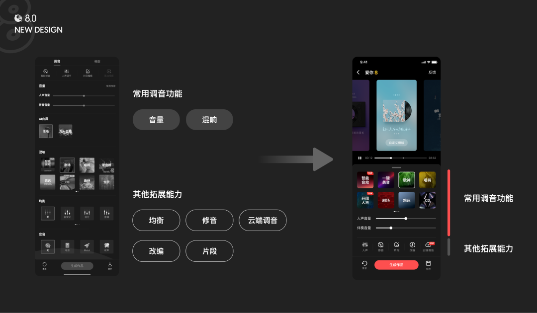 今年全民K歌的设计团队发了一篇录唱模块改版文章:唱我想唱——全民K歌8.0录唱模块设计总结