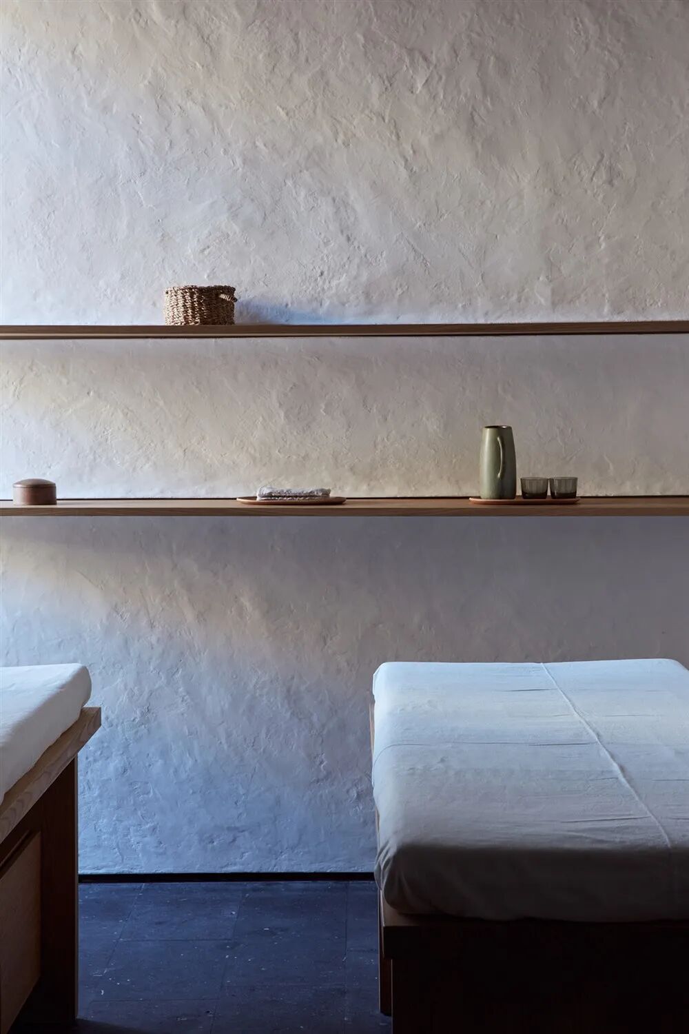 SPA综合体结合了不同文化的美学和原则。这个空间的目的是消除SPA通常固有的文化边界。在太空中,光线构建得当,没有额外的光泽和装饰。所有这些都会影响客人的感知,让他专注于身体护理。只使用天然材料:地板上的玄武岩和凝灰岩、马扎卡、混凝土碗和由实心或橡木贴面制成的木制家具。水疗中心有四间适合不同治疗的房间。