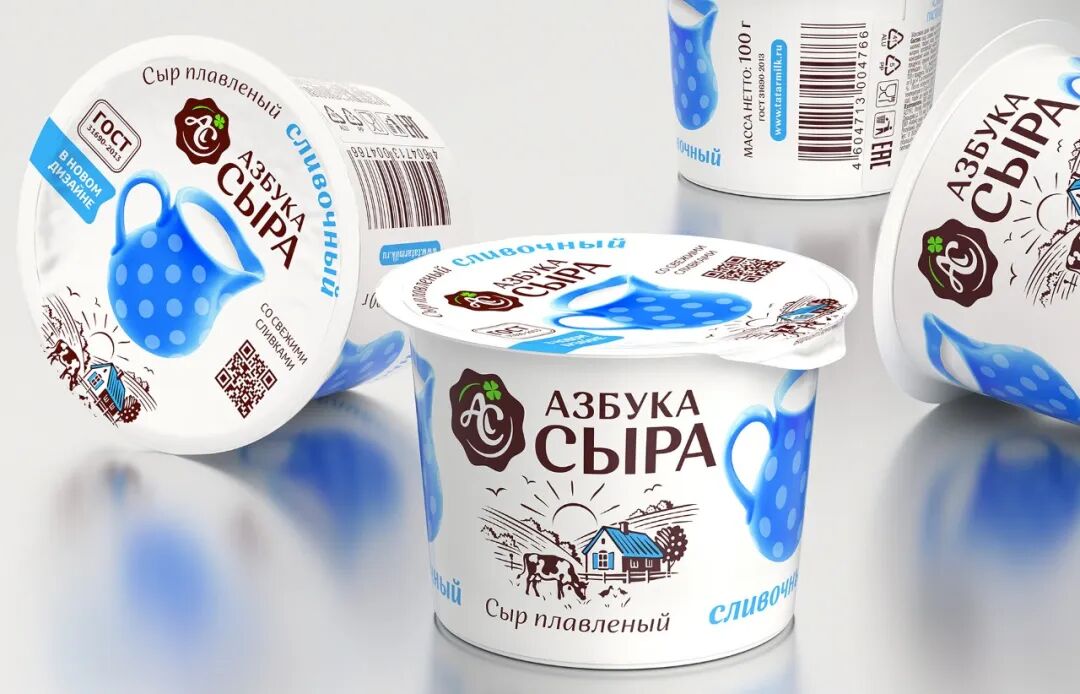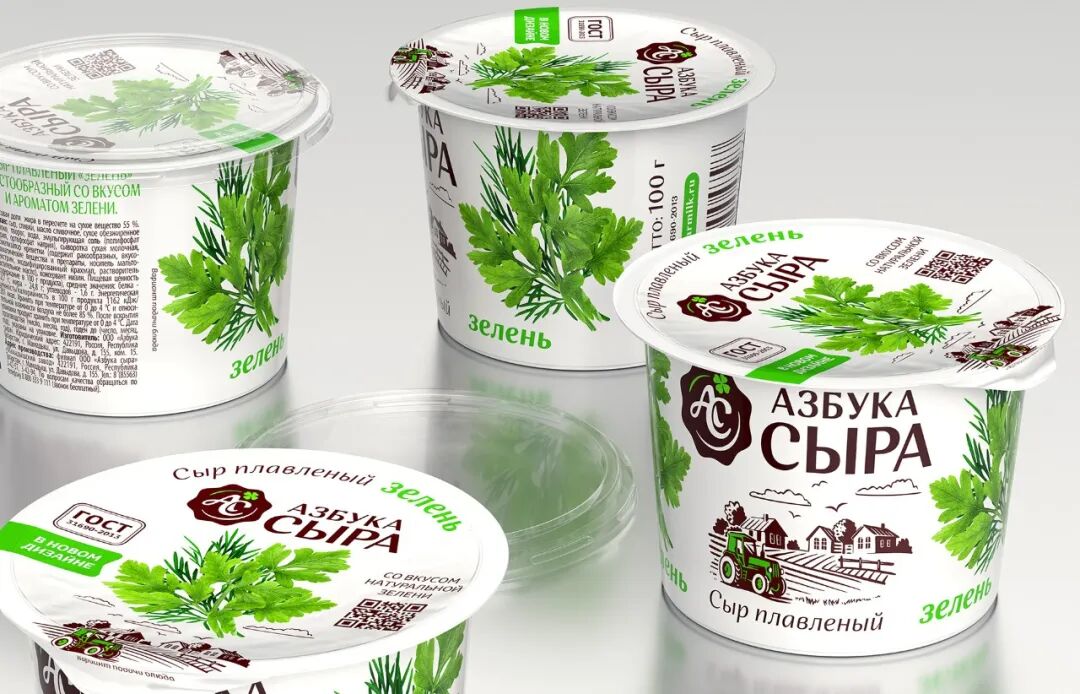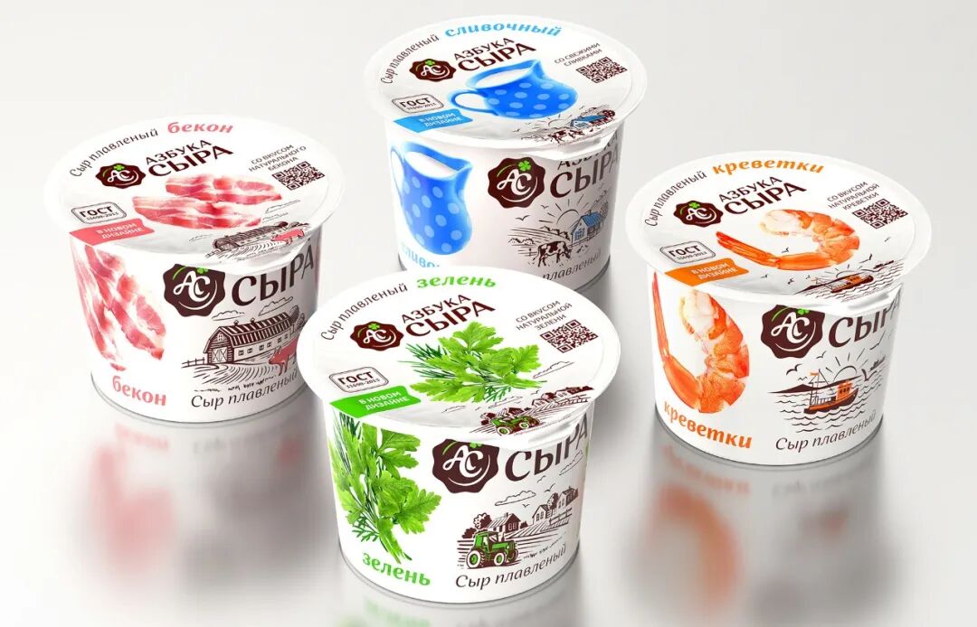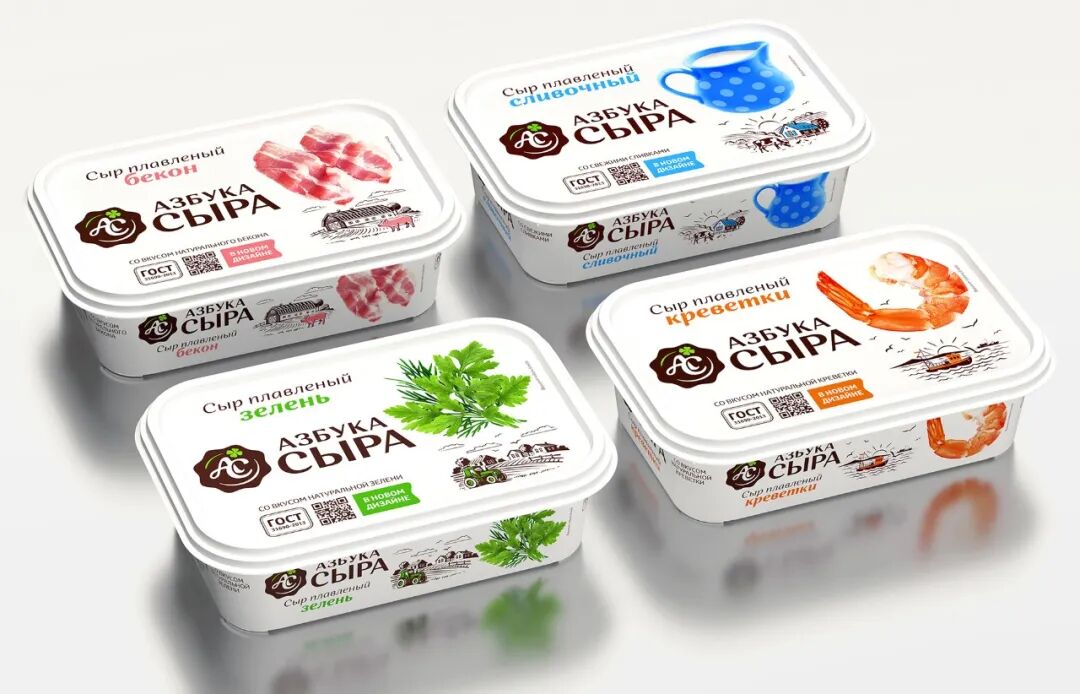 俄罗斯最大的硬奶酪和加工奶酪生产商之一 "Azbuka syra "公司的商标和一系列包装产品的重新设计。