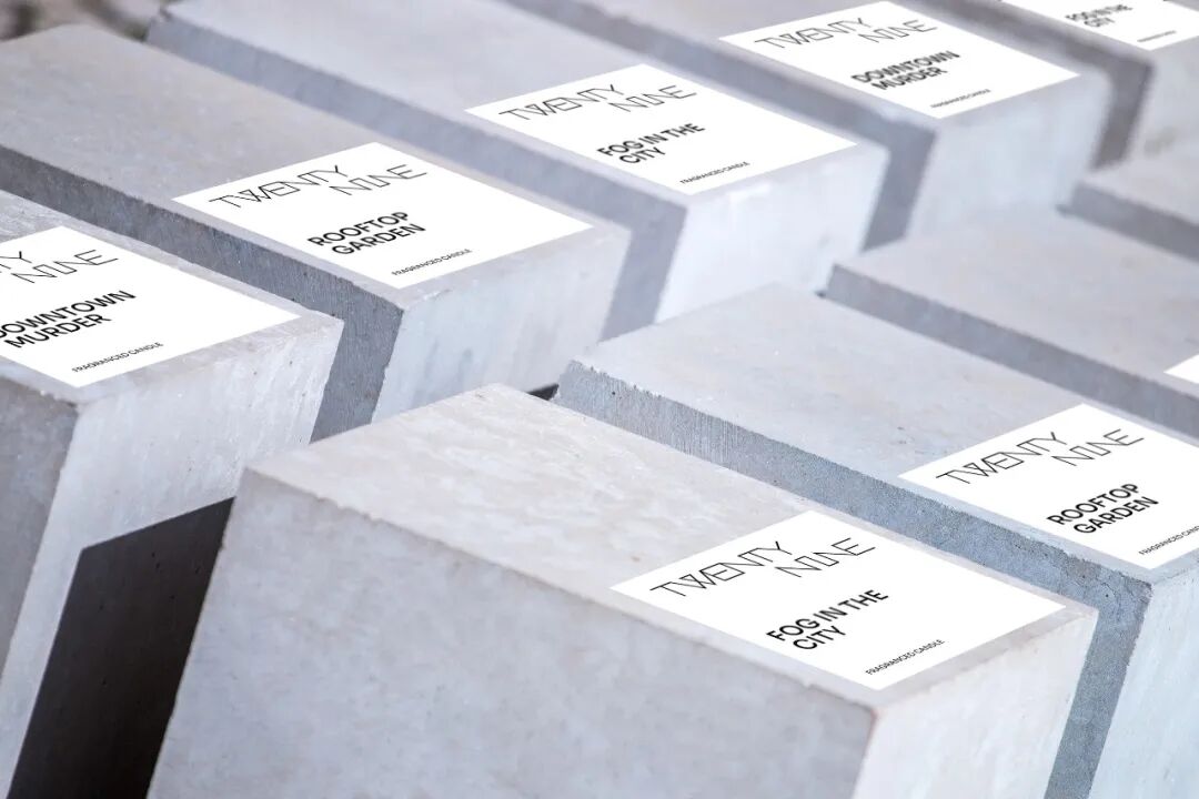 标志的字体部分的线条是直的,尖锐的,并参考了蜡烛碗的形状。线条的连续性象征着长期燃烧的火焰。决定在企业形象的设计中使用一种简洁的风格。该项目的主要色彩方案(灰色和蓝色的阴影)的灵感来自于城市混凝土建筑和黄昏时分的天空颜色:在一天中的那个时候,你想点燃一支蜡烛,感到温暖,就像拥抱所爱的人。互补色(苔藓和过熟浆果的颜色)象征着野性,有时会冲破这座城市寒冷的建筑。 它们主要用于包装设计,适用于蜡烛香水的名称(绿色-“屋顶花园”,浆果-“中心杀戮”)。