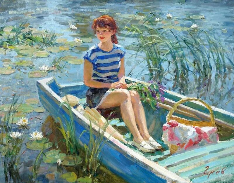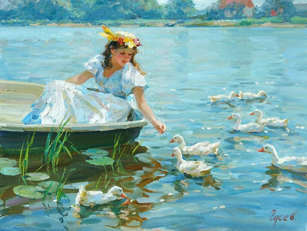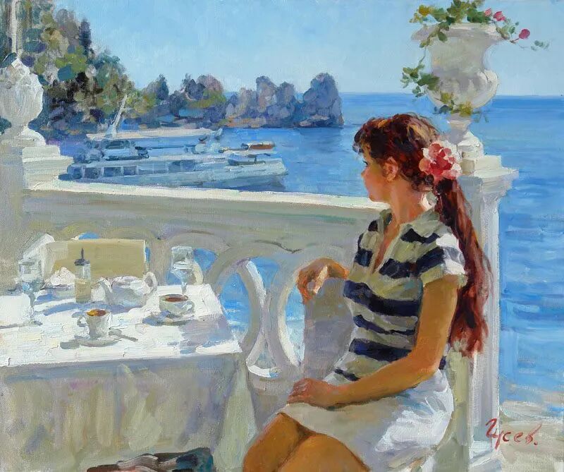 当我们在看弗拉基米尔·古谢夫的画作时,那些画面上明亮而艳丽的色彩,在暖洋洋的阳关照射下,充满了无限的诗意和愉悦,整个心情都变得非常放松和惬意