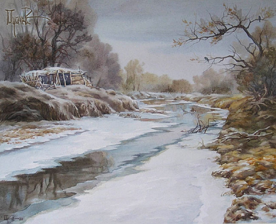 /俄罗斯画家Pugachev,Paul S雪景风景水彩画