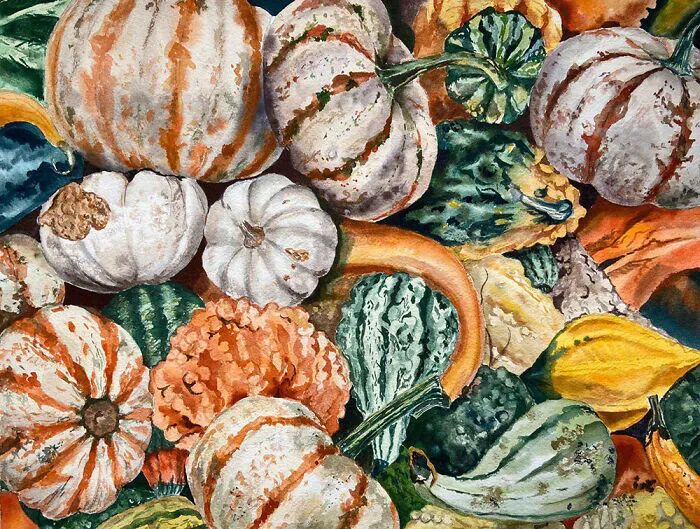 珍妮·安德烈耶娃的水彩作品,还有另外一个特征,那就是对于细节的把控与描绘非常精细,正是这种描绘让她的作品显得非常逼真,将水彩画画成近乎照片的细致程度,非常考验画家的耐心。