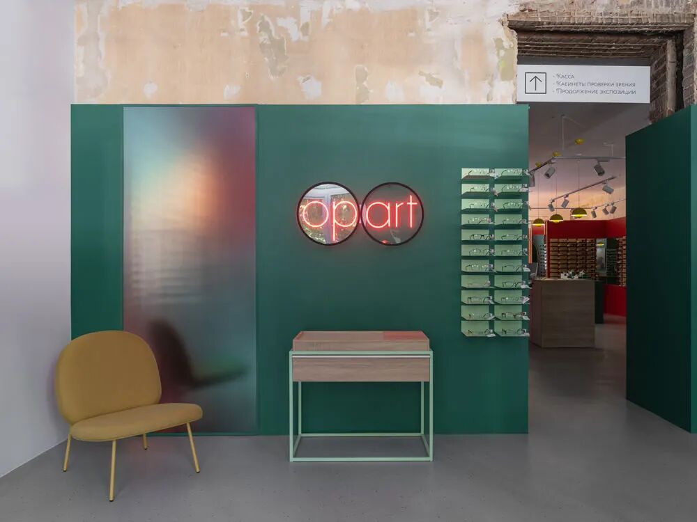 Opart - 位于顿河畔罗斯托夫。Opart 品牌的概念不仅仅是一家眼镜店,而是一个艺术画廊,在这里眼镜作为艺术品展示,并穿插在绘画、摄影和雕塑中。