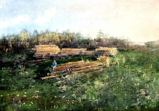 /俄罗斯Sergei Temerev的郊外风景水彩画