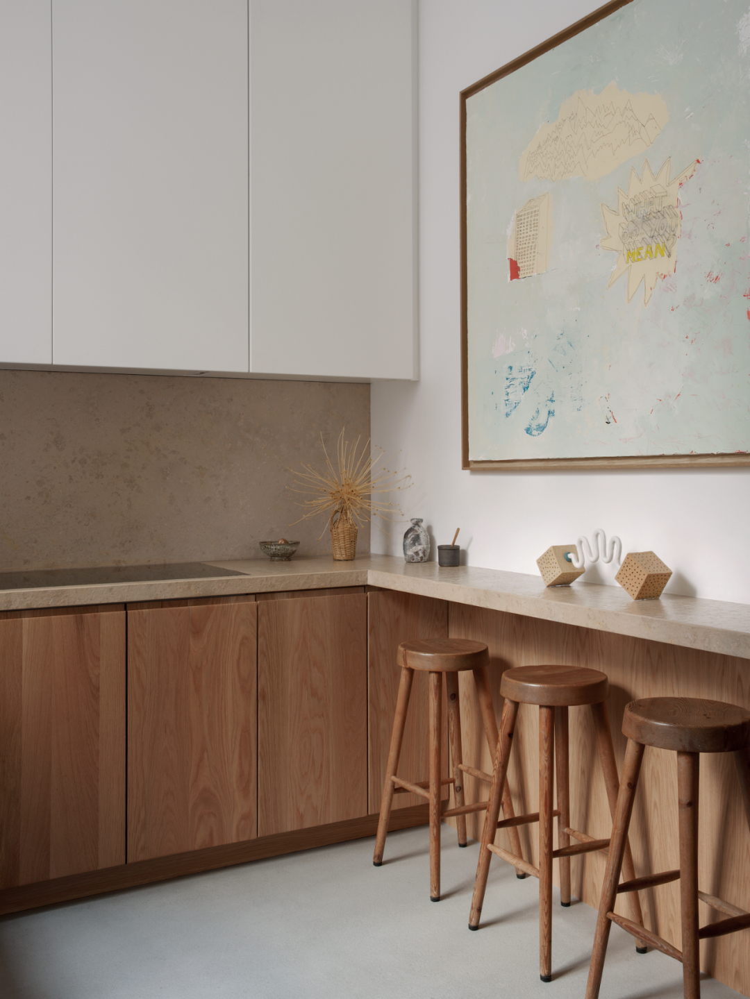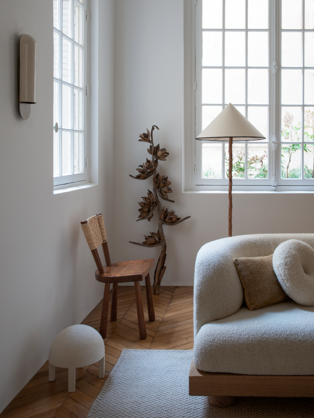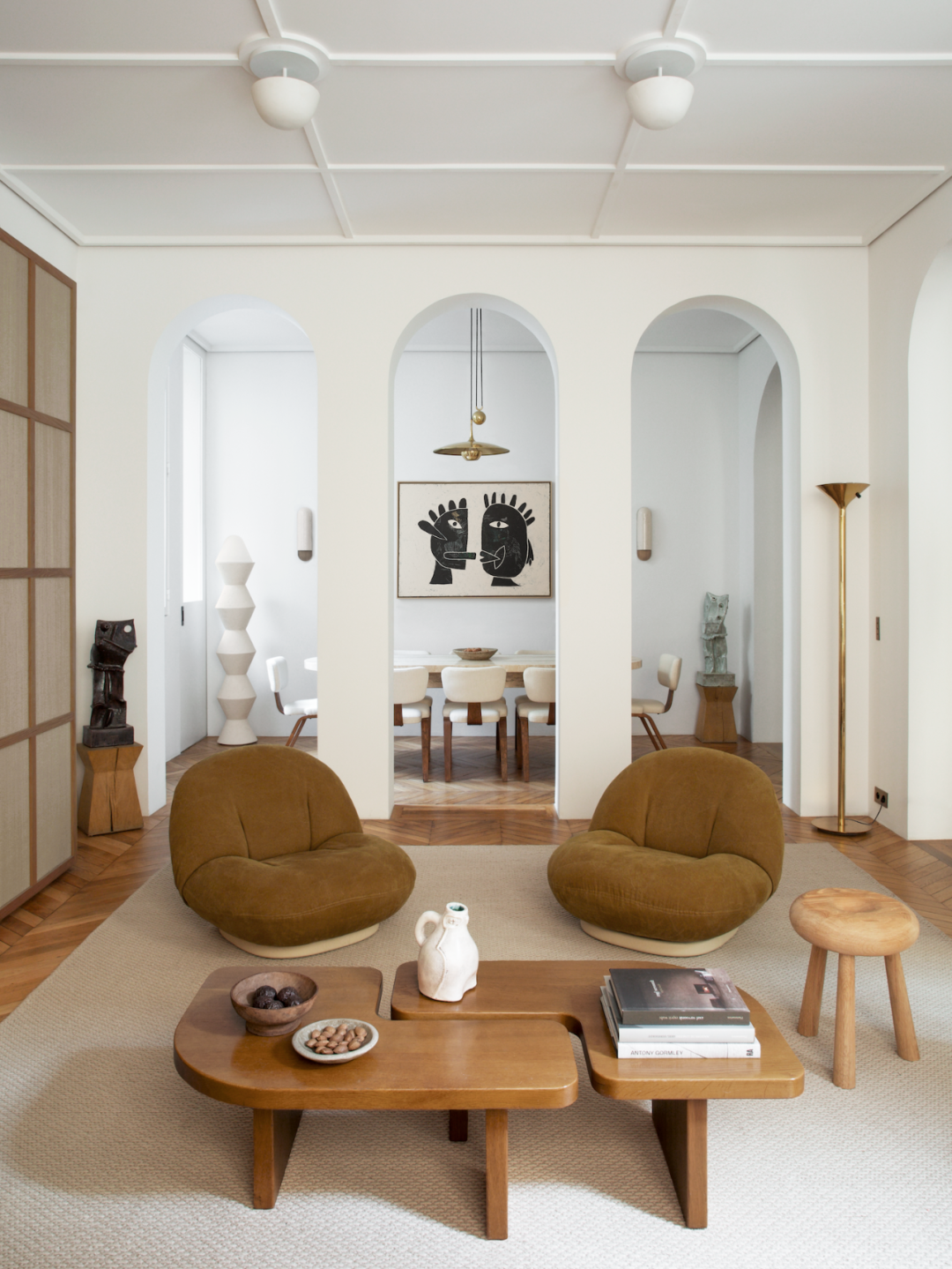 The client stumbled upon the perfect blank canvas apartment, unimposing on the outside and full of promise on the inside, located on the first floor of a typical Parisian building. A true hidden treasure, the designers prioritized privacy and conviviality, fulfilling the client's desire for tranquility in the heart of the city. "Knowing that the family is settled in a place that suits their lifestyle and will be with them for a long time to come.