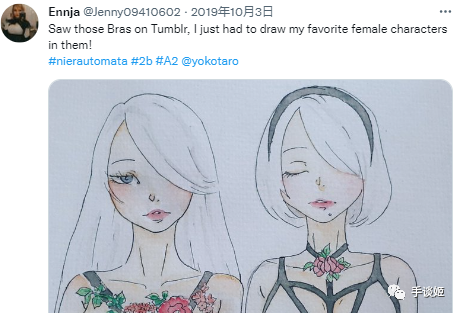 更有趣的是,Jen的账号在这之前就被横尾太郎关注了,当时Jen画了一张A2和2B的裸体插画并@了横尾太郎。