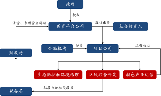 除规范的PPP模式外,在已落地的项目中,EOD项目更多地采取了“投资人+EPC”的模式,也称作“股权合作型EPC”模式,即EPC总承包方(社会投资人)与政府股权合作合资组建项目公司,政府按规定通过直接投资、资本金注入、投资补助等方式予以实施。项目公司作为投资开发主体,承担项目的资金筹措、勘察设计、投资、建设、产业导入、运营服务等工作,并获取投资运营收益。预计未来该模式将成为EOD项目的主流模式。