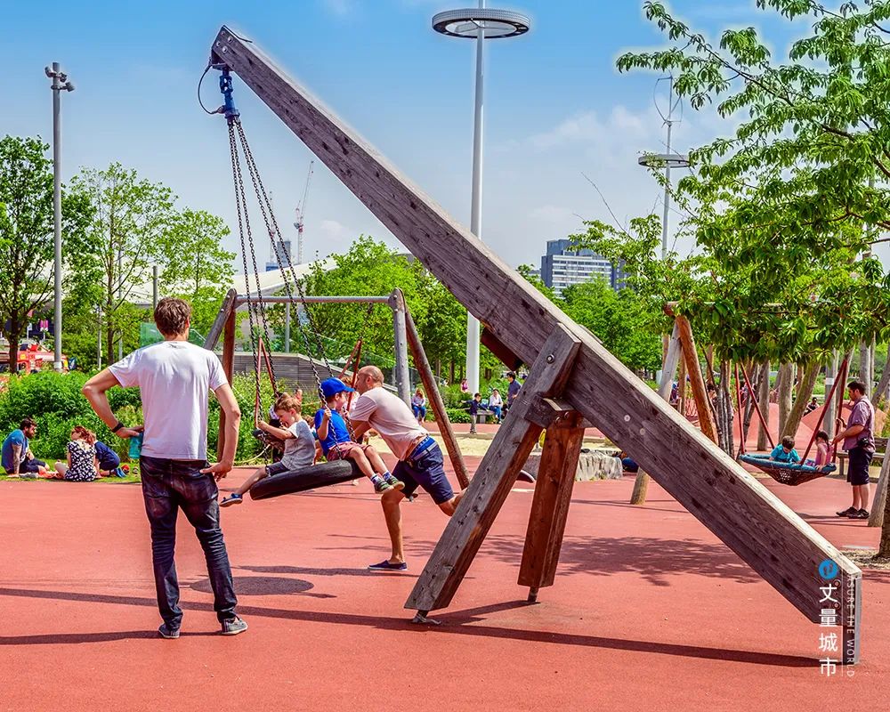 除了重塑河道的生态,沿河还融入各类休息区、活动广场、儿童活动场等等空间,弥尔河升级为城市的中央公园。