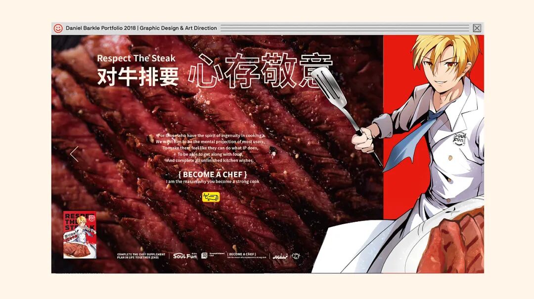 品牌主打的牛排,对于一不小心“炸厨房”的年轻人具有挑战门槛,但下厨的成就感又是看得见、吃得到、有反馈的快乐充值。因此在满足品质诉求及品牌专业背书的基础上,从“成就料理师”入手,希望打造一个满足职业感和热血感的品牌。