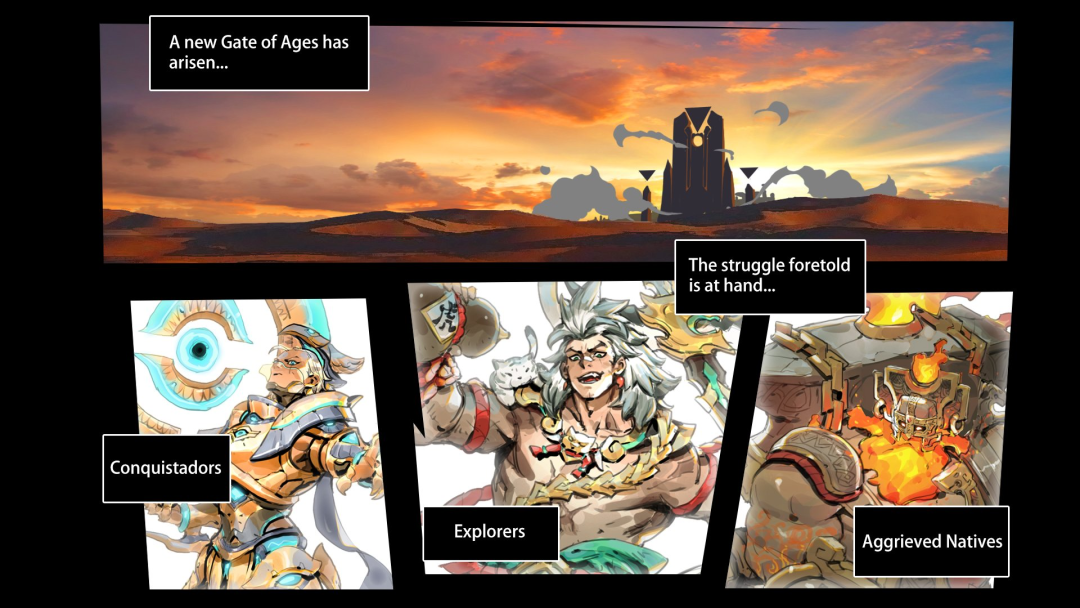 相比前面两款,《Gate of Ages: Eon Strife》的二次元风格不算浓厚,更像是典型欧美卡通和典型二次元画风之间的某种过渡地带。游戏的题材和近期出海的一些卡牌产品类似,选择从世界各地的神话故事、民间传说中取材,方便产出相应的英雄角色等。