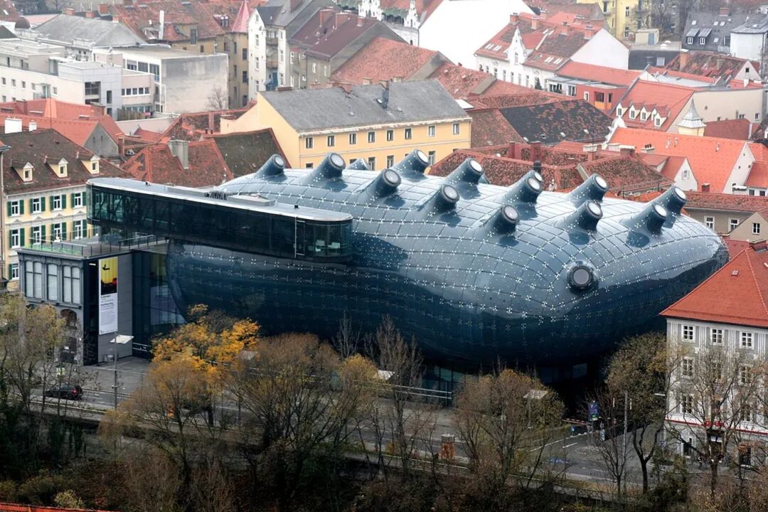 电讯派小组主要成员Peter Cook唯一的建成作品格拉茨艺术博物馆Kunsthaus Graz。